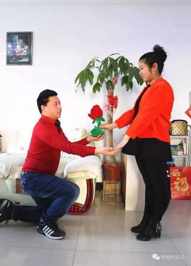 男孩儿穿着白衬衫,打着红色的蝴蝶结,女孩儿穿着黄色带花的连衣裙,两人摆出各式各样的姿势,在镜头里 " 甜蜜相伴 " ——每次看到 19 年前的这组 " 结婚照 ",高天、高林都露出幸福的微笑。2 月 5 日(农历正月初九)这天,效仿当年的甜蜜姿势,高天、高林在家人的帮助下,重新拍下了一组照片。这次,虽然二人身着便装,也没有华丽的背景,但对他们来说却有着特殊的意义。图为高天、高林模仿儿时 " 婚纱照 " 的姿势照了这张照片。